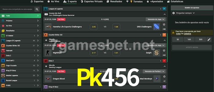 O Pk456 oferece uma grande seleção de opções de apostas em e-sports com probabilidades competitivas